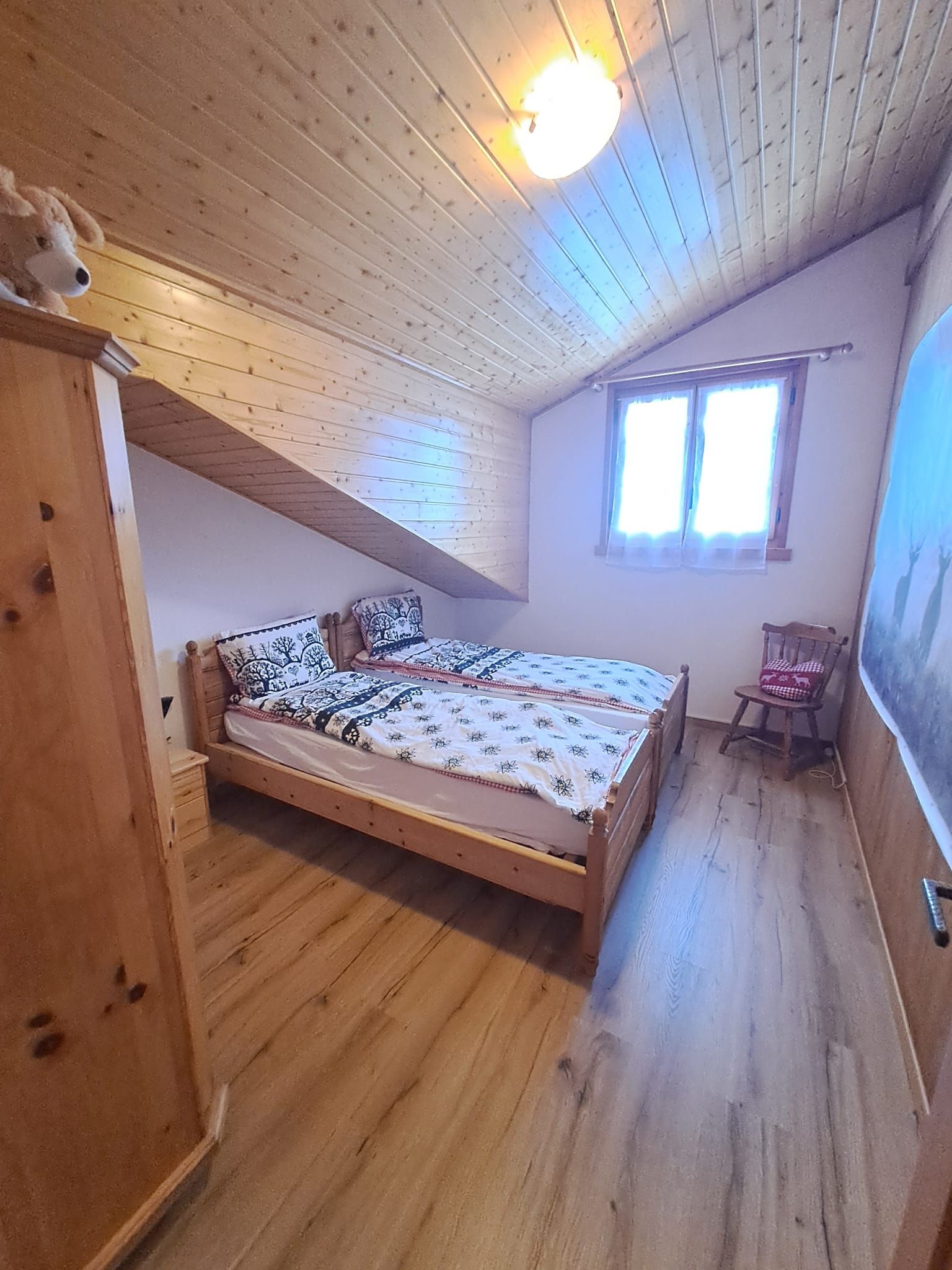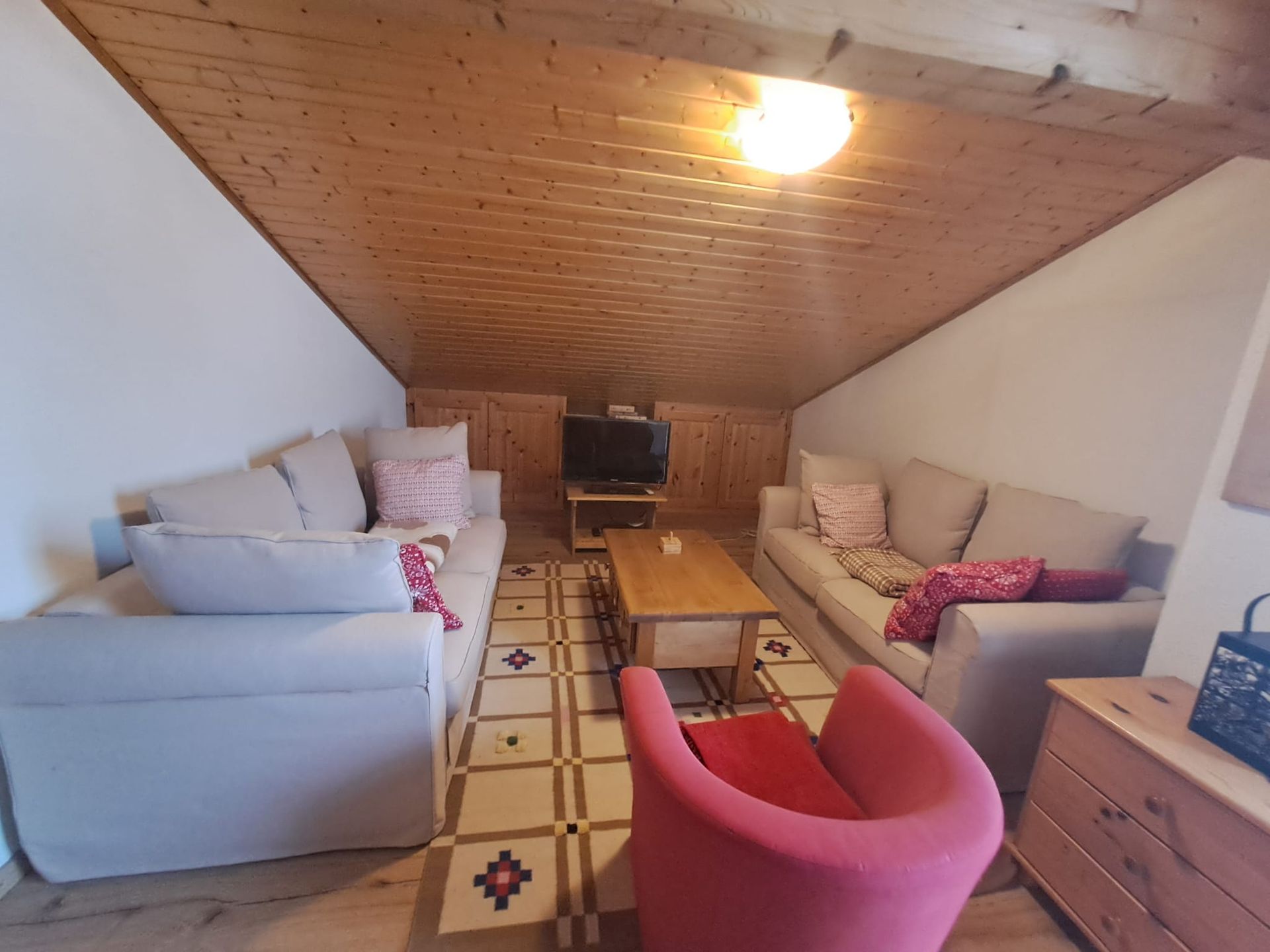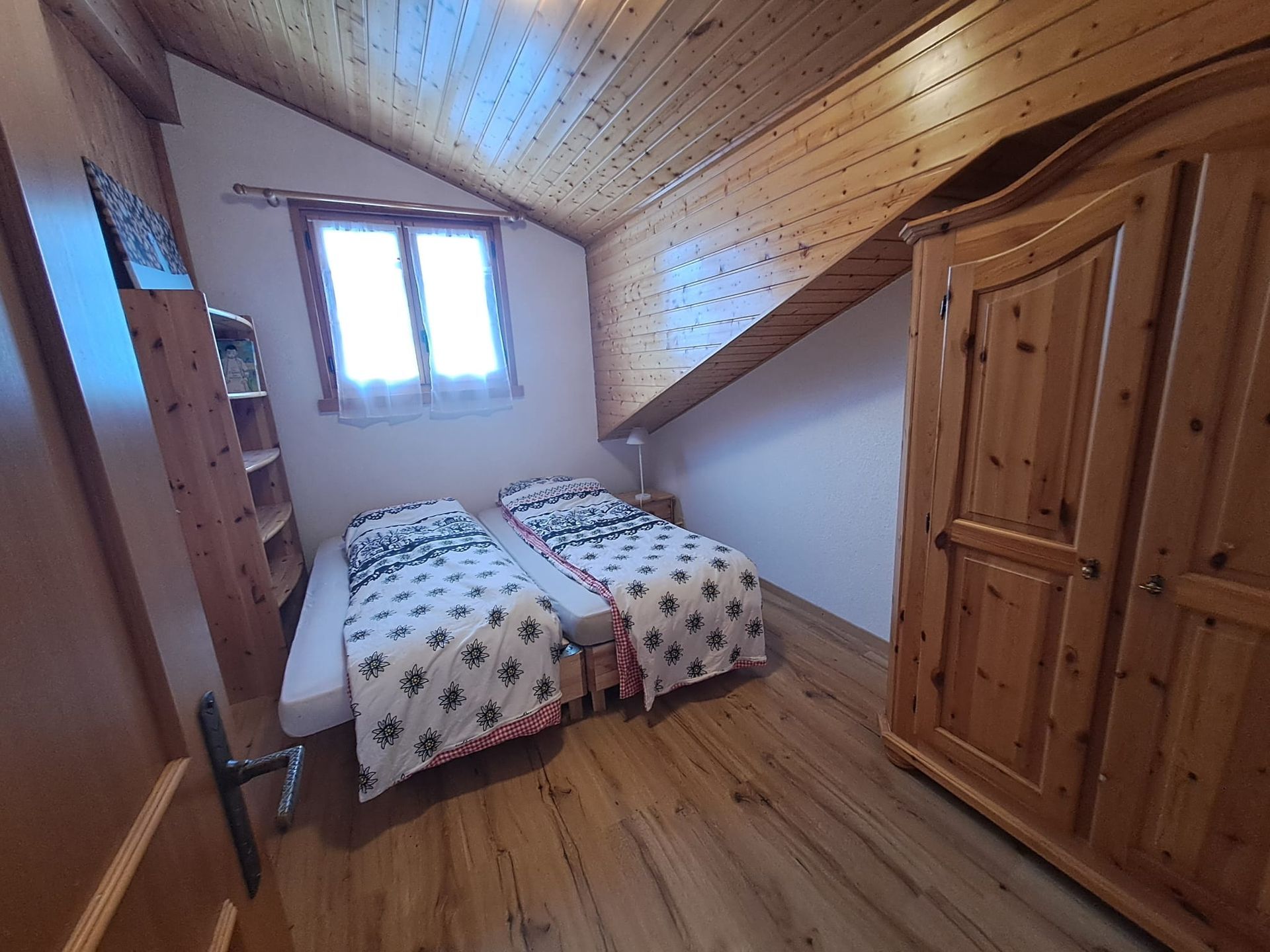 L’appartement A32, 4 pièces, se situe au deuxième et dernier étage de l’immeuble en PPE muni d’un ascenseur. Il est composé d’un séjour (env. 21 m²) et de trois chambres à coucher (de 10 à 20 m²). Une lucarne à l'est permet à la lumière naturelle d’entrer dans deux des chambres à coucher. L’accès au balcon (env. 10 m², orienté sud-ouest) se fait depuis le séjour ou depuis une des trois chambres. Vue sur le domaine skiable du Meilleret et sur le massif des Diablerets. La cuisine comprend four électrique, lave-vaisselle, réfrigérateur et plaque de cuisson vitro-céramique avec hotte de ventilation. Il y a une salle de bain avec baignoire et lavabo, puis séparément, un WC et lavabo.